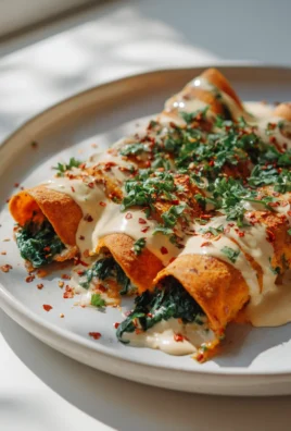 Süßkartoffel-Spinat-Enchiladas mit Cashew-Creme – Veganes Rezept voller Geschmack
