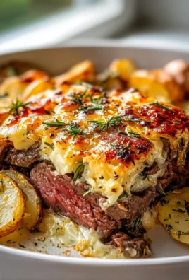 Cremiger Knoblauchbutter Steak Cheddar Kartoffel Auflauf